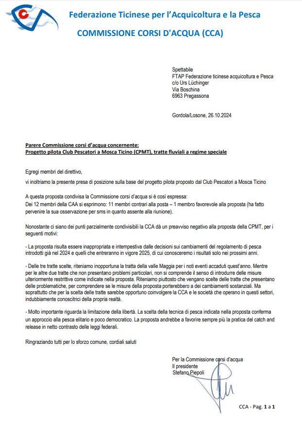 FTAP, Tessiner Kantonalverband, einmal mehr gegen den Artenschutz die Nachhaltigkeit und schonende Fischereimethoden.